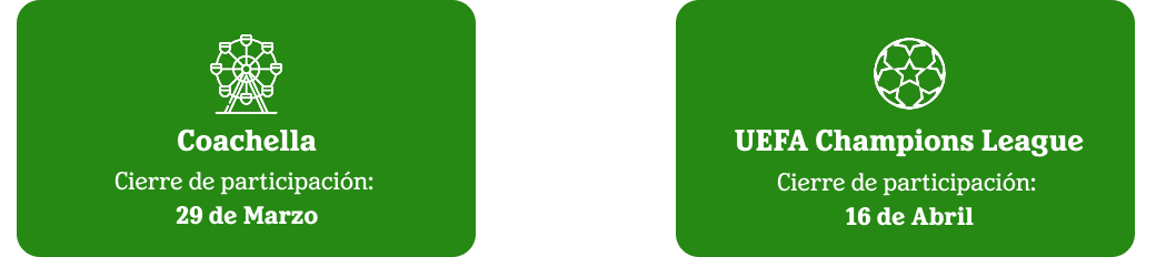 Aplican Términos y Condiciones Heineken.com/co/es/fandom/terms. Promoción valida desde la activación de la publicidad hasta el 19 de Abril de 2026 para THE FANDOM CHAIR – Coachella y hasta el 16 de Mayo de 2026 para THE FANDOM CHAIR – Champions, a través de los canales autorizados. Participan compras registradas mediante factura válida en la landing oficial. EL EXCESO DE ALCOHOL ES PERJUDICIAL PARA LA SALUD. PROHÍBASE EL EXPENDIO DE BEBIDAS EMBRIAGANTES A MENORES DE EDAD.
