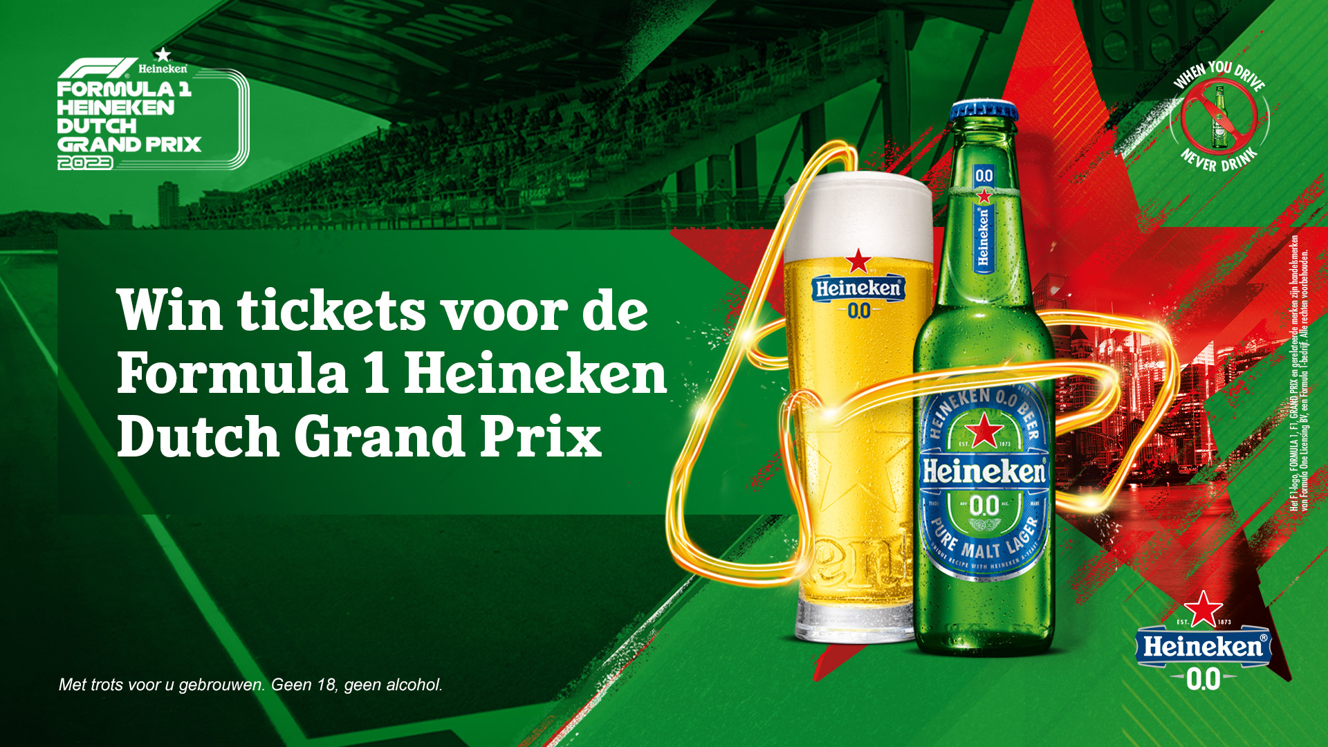 Eind augustus staat Zandvoort in het teken van de Formula 1 Heineken Dutch Grand Prix. Wil jij bij dit ultieme race spektakel zijn? Jij maakt kans op de eerste prijs: 1x 2 Heineken® Player 0.0 Pitwall Bar tickets op zondag 27 augustus 2023. Óf de tweede prijs: General 1 x 2 General Admission tickets op zondag 27 augustus 2023.